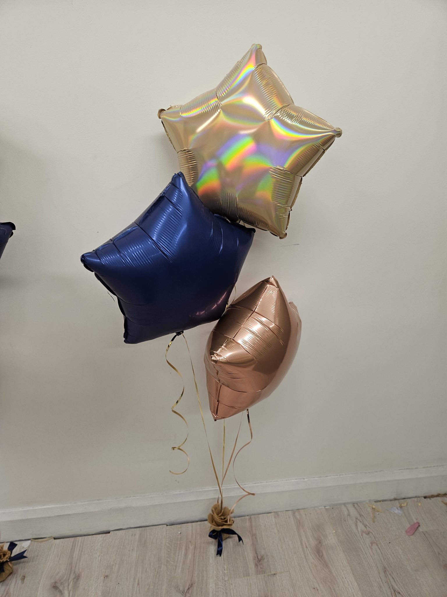 Our foil balloon bunches are stunningly beautiful and the simplest way to turn any casual get together into an occasion. These balloons have a long life meaning they hold their beauty much longer than their latex counterpart.